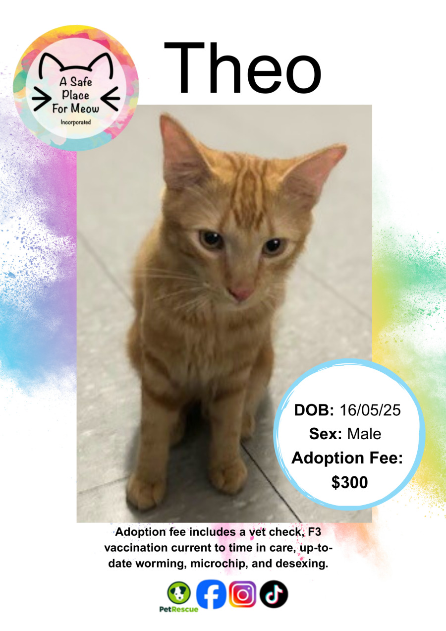 Meet Theodore, the charming feline with a heartwarming story of transformation. Theodore came under our care as a "spicy" little bundle along with his siblings but has since blossomed into a loving and affectionate cat. Though initially timid, Theodore has proven that with a bit of patience and understanding, he can be an incredibly cuddly companion.