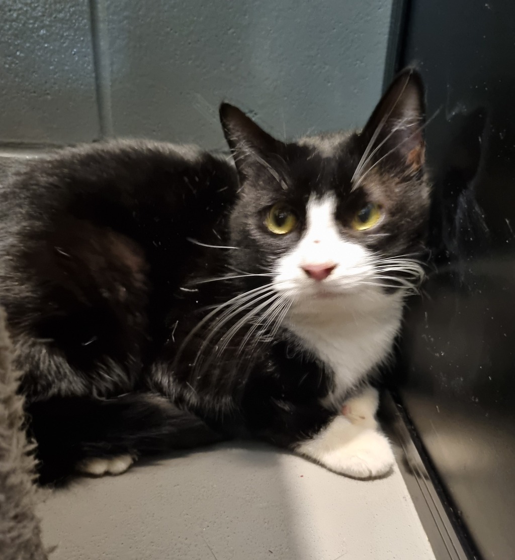 Chester is a handsome adult tuxedo cat with an air of quiet elegance and timeless charm. With his sleek black-and-white coat and calm, observant nature, he carries himself like a true gentleman.