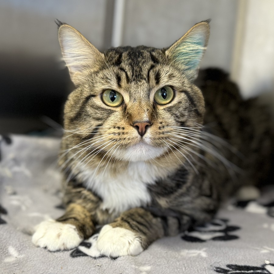 Theodore also enjoys the company of other cats and has lived peacefully with feline friends before, so he could be a wonderful addition to a multi-cat home. When he’s not snuggling, you’ll find him chasing toys or showing off his playful side.