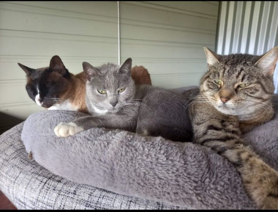 Misty, a dignified X Burmese at 18 years young, is blind but navigates life with Bella, her 14-year-old DSH Tabby companion. Bella is devoted and caring, acting as Misty's guiding light with unwavering loyalty. Stella, their 14-year-old X Russian Blue friend, is not as closely bonded with the other two and is a bit more independent. Stella enjoys a bit of adventure and loves her meals. Whether adopted together or separately, these graceful girls will bring beauty, charm, and companionship to their new homes.