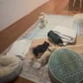 - Has always been around cats, likes to play with them once familiar but will give them space if necessary.