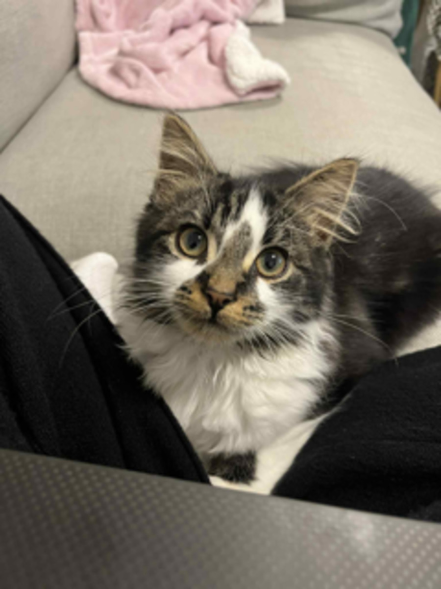 Timothy is a fluffy, charismatic kitten with a heart as big as his appetite! He's the perfect mix of playful and cuddly, always ready to charm his way into your heart. He's the sweetest and goofiest little guy who loves to make people laugh with his silly antics.