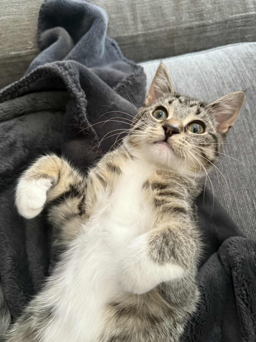 I'm a total cuddlebug who loves to snuggle and be close to my people. When I'm not getting head scratches or napping in a sunny spot, I love to play! My favorite toy is a little mouse, and I have a great time wrestling with my furry friends. I'm already a pro at using the litter box and get along well with other cats and dogs.