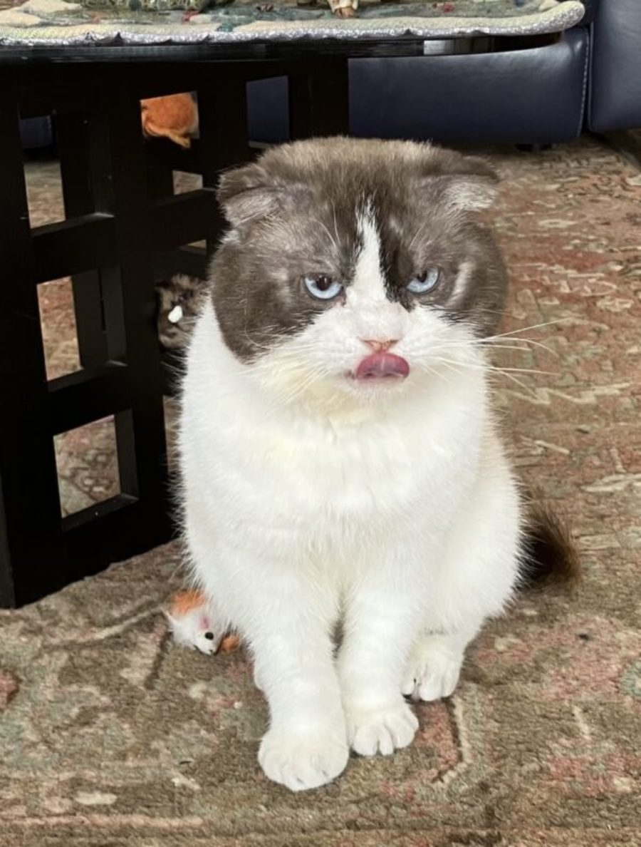 Romeo may look a little like Grumpy Cat, but don’t let the resemblance fool you — he’s anything but grumpy.