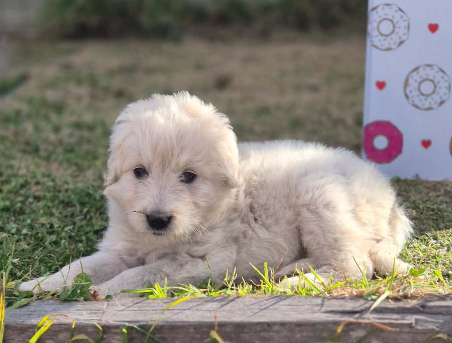 Abby’s mum, Penny, is a Maremma and although her dad is unknown, all the pups have magnificent wavy or curly white or gold cream coats, suggesting that dad could be a Golden Retriever or similar.