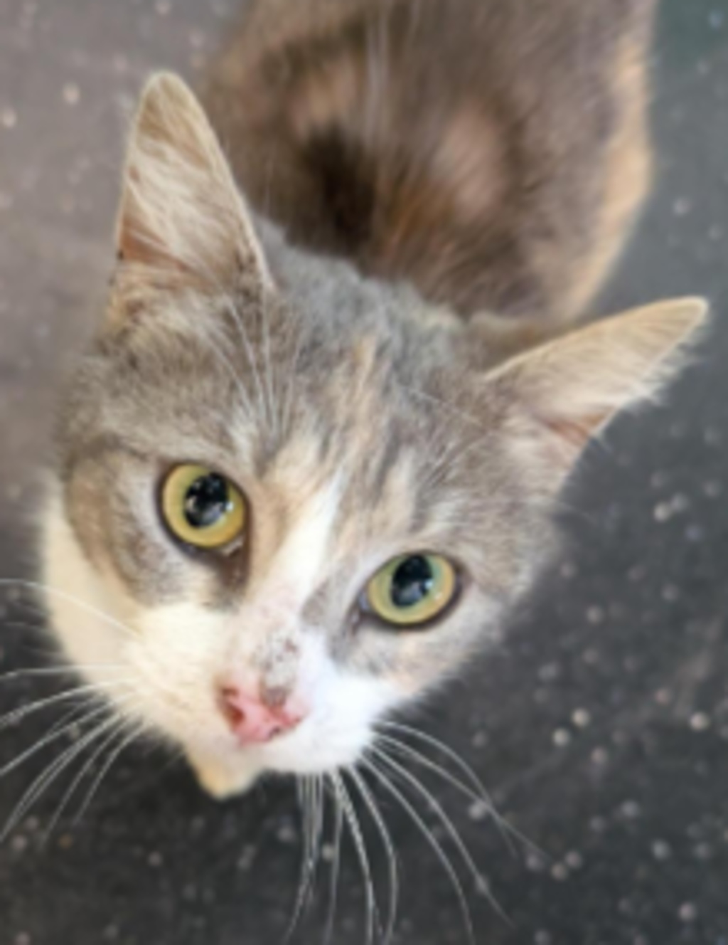Julia is a stunning muted calico domestic short-haired female with soft, painterly coloring that sets her apart from the crowd - no ordinary tabby here! Her quiet elegance is matched by a sweet, calm nature that blooms with just a little patience and nurturing.