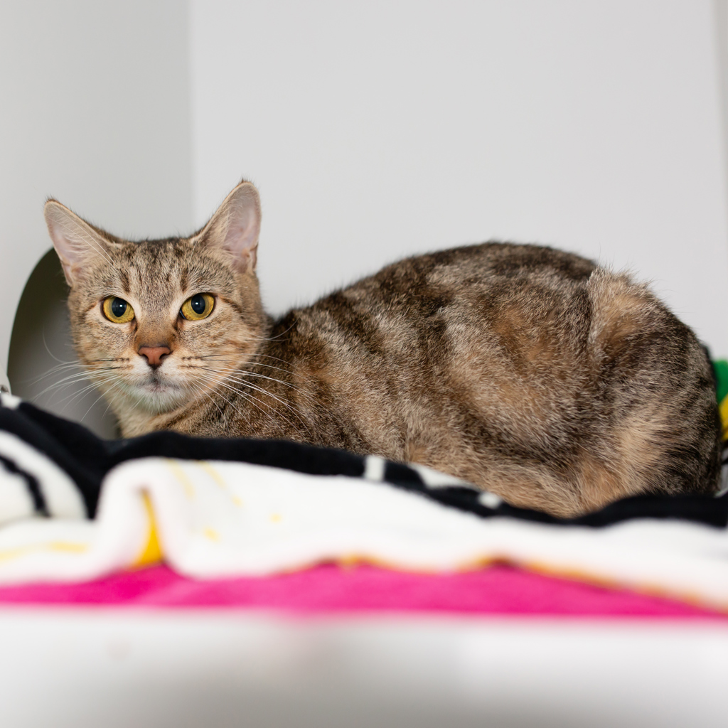 Queenie is a calm, reserved girl who's still learning that the world can be a safe and loving place. She might be a little shy at first, but beneath that quiet exterior is a sweet and sensitive cat just waiting to feel secure and loved.