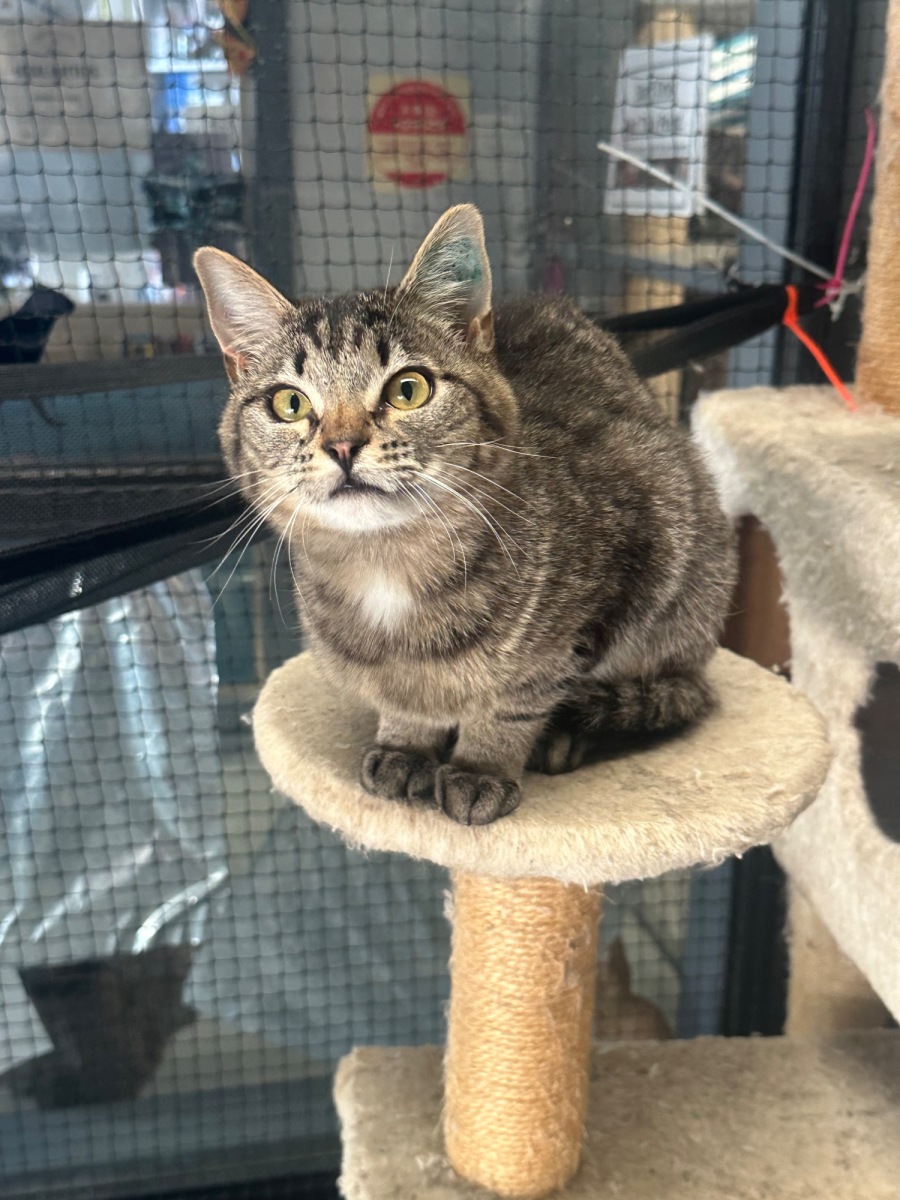 Bunny is a 5mth old tabby desexed female kitten. Found in a garden with 2 siblings - who we are still working with behaviour wise. Bunny is the friendly one of the 3 - playful and a purring machine.