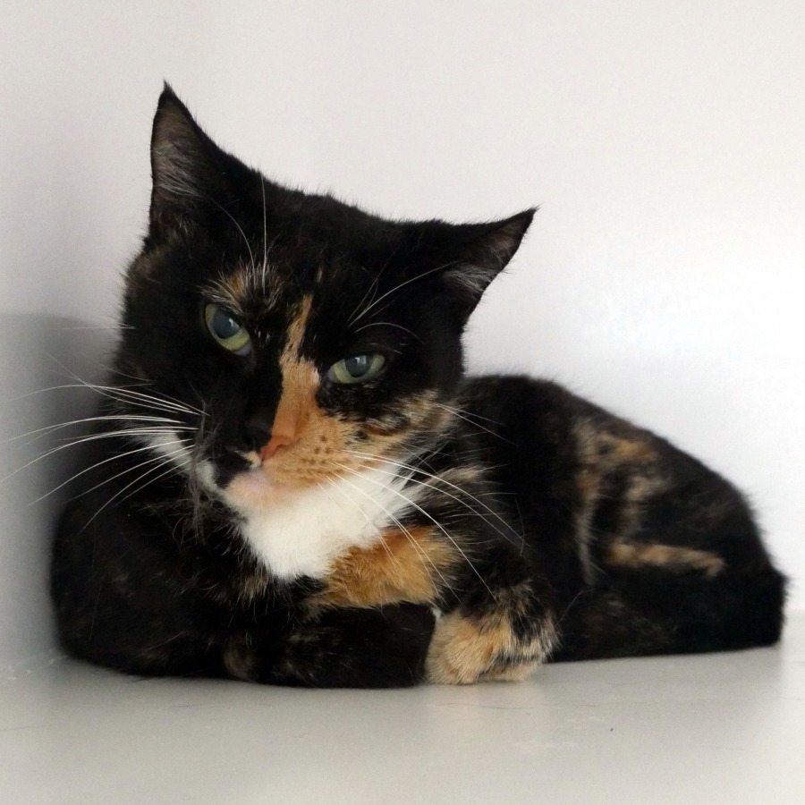 Meet Selena, a stunning Torti with exquisite markings that capture both her beauty and her enchanting personality. She's a young teenager who carries a shy grace, especially when interacting with new people or acclimating to unfamiliar environments. Give her time, however, and you'll find that her cautious exterior hides a gentle and affectionate soul ready to blossom.