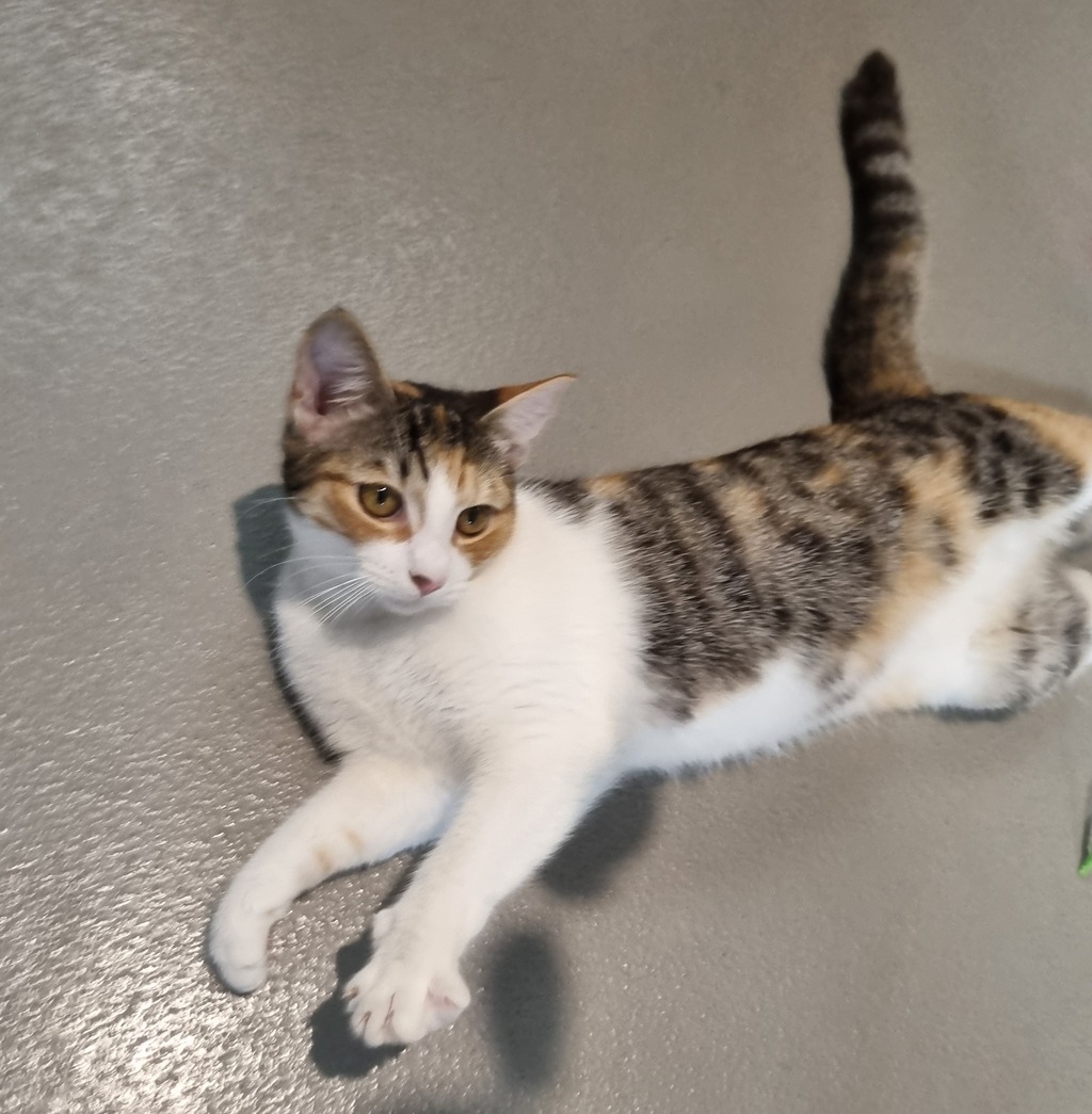 Say hello to Pebbles, a young, super friendly calico girl with a big personality and an even bigger heart. Pebbles is incredibly social-she loves people, enjoys attention, and is always ready to be part of whatever you're doing.