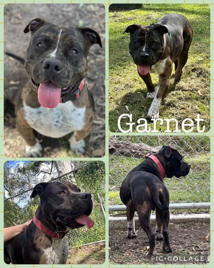 Meet Garnet, a delightfully goofy and kind-hearted dog who's overflowing with a charm that is simply irresistible. Beneath his rugged exterior lies a softie who has a big heart perfect for cuddles and companionship. He's happy to do his own thing but also enjoys being around his favourite humans, making him the ideal dog for someone who appreciates independent yet affectionate pets.