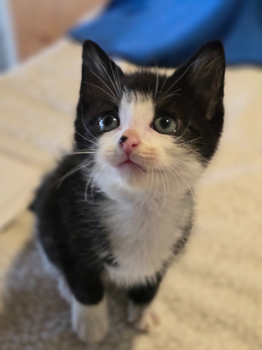 Leo dreams of a cozy nook and a warm bed to call his own, where he can enjoy snuggles and purr his heart out. Being a young kitten, he's not yet ready to explore the great outdoors on his own, but he would be thrilled with a secure yard where he can safely embark on his little adventures in the future. Leo's playful antics are sure to bring joy and entertainment to his new family—whether he's chasing after a toy or curling up for a nap alongside you, he'll always bring a smile to your face.