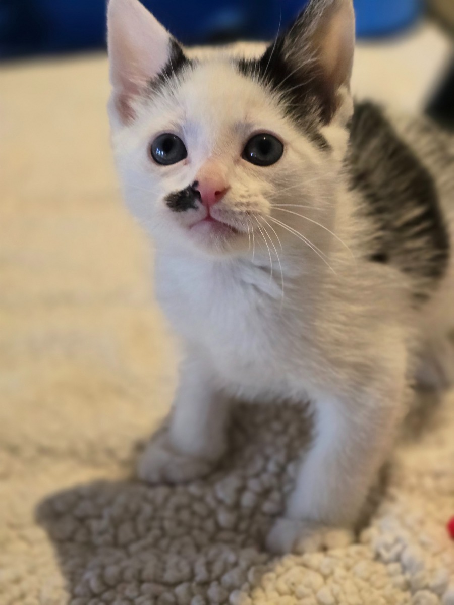 Taurus is a fun, friendly little kitten with a world of love to offer. With his charming kitten antics and playful spirit, Taurus is sure to bring a smile to your face every day. He's a curious little guy, always ready to chase balls and catch shadows, turning simple moments into hilarious play sessions.