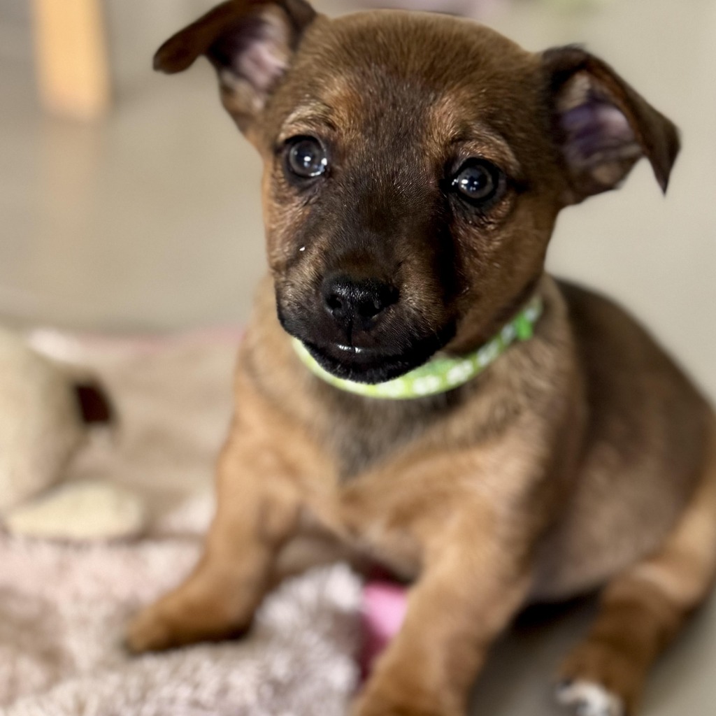 This delightful puppy will melt your heart, just like the perfect s’mores moment—sweet, warm, and impossible to forget. She adores her siblings, enjoys backyard adventures, and is making great progress with her toilet training using the doggie door.