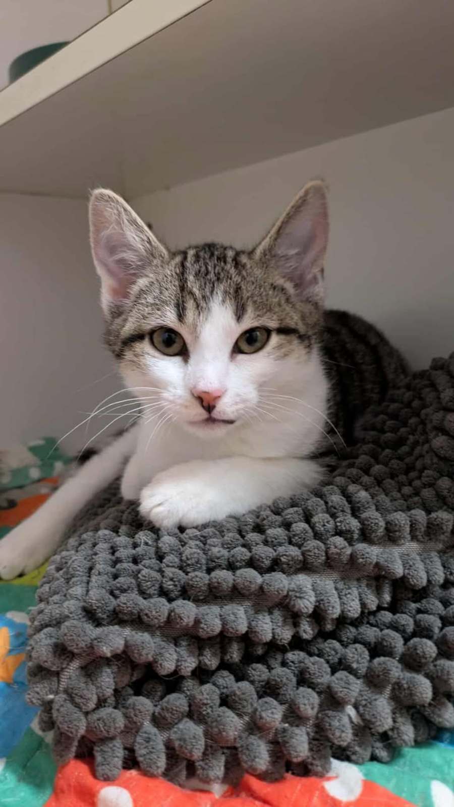Since being in care, it hasn't taken long for Meringue and his family to settle in and get comfy. Meringue adores playing, cuddling and napping with his siblings and getting to know his human friends, there's no end to his fun and sweetness.