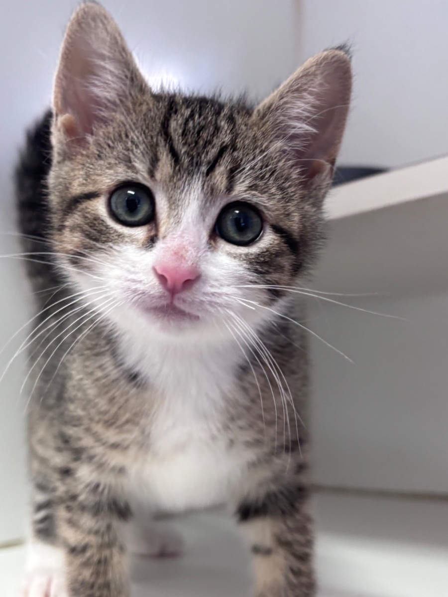 Meet Daisy - delightful Daisy is a sweet, playful, curious little bundle of joy, Daisy enjoys spending her days playing and exploring. Daisy is a Brown tabby with an adorable white face.