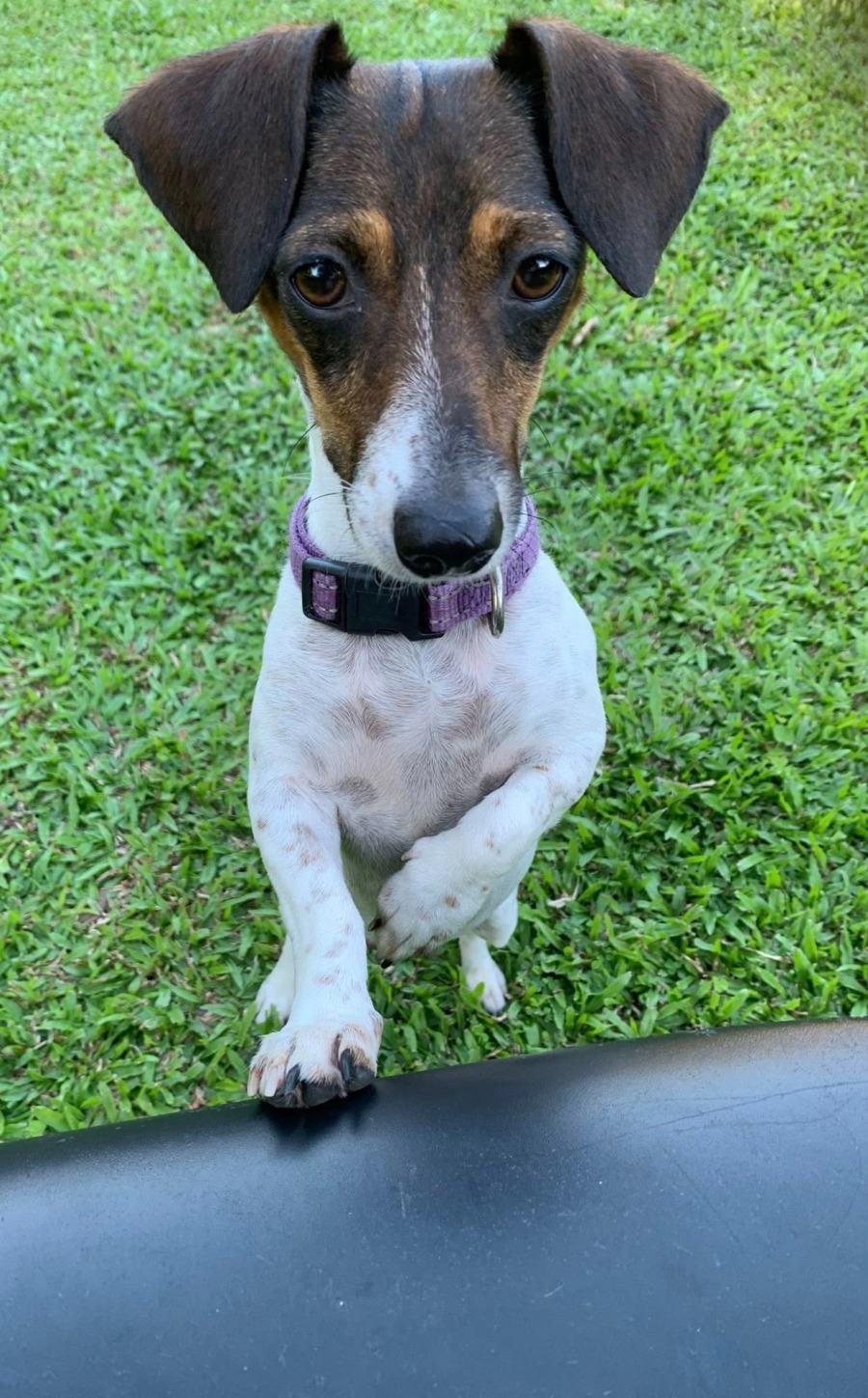 Zara was born on 09/06/24 so is she still young but is fully grown. She is a small dog (less than 5kgs) and has the physical features of both a Dachshund and Jack Russell. Her body shape is similar to a Dachshund but her colouring, personality and agility are pure JR; she can effortlessly jump on a chair, couch or bed (if allowed) to be close to her people.