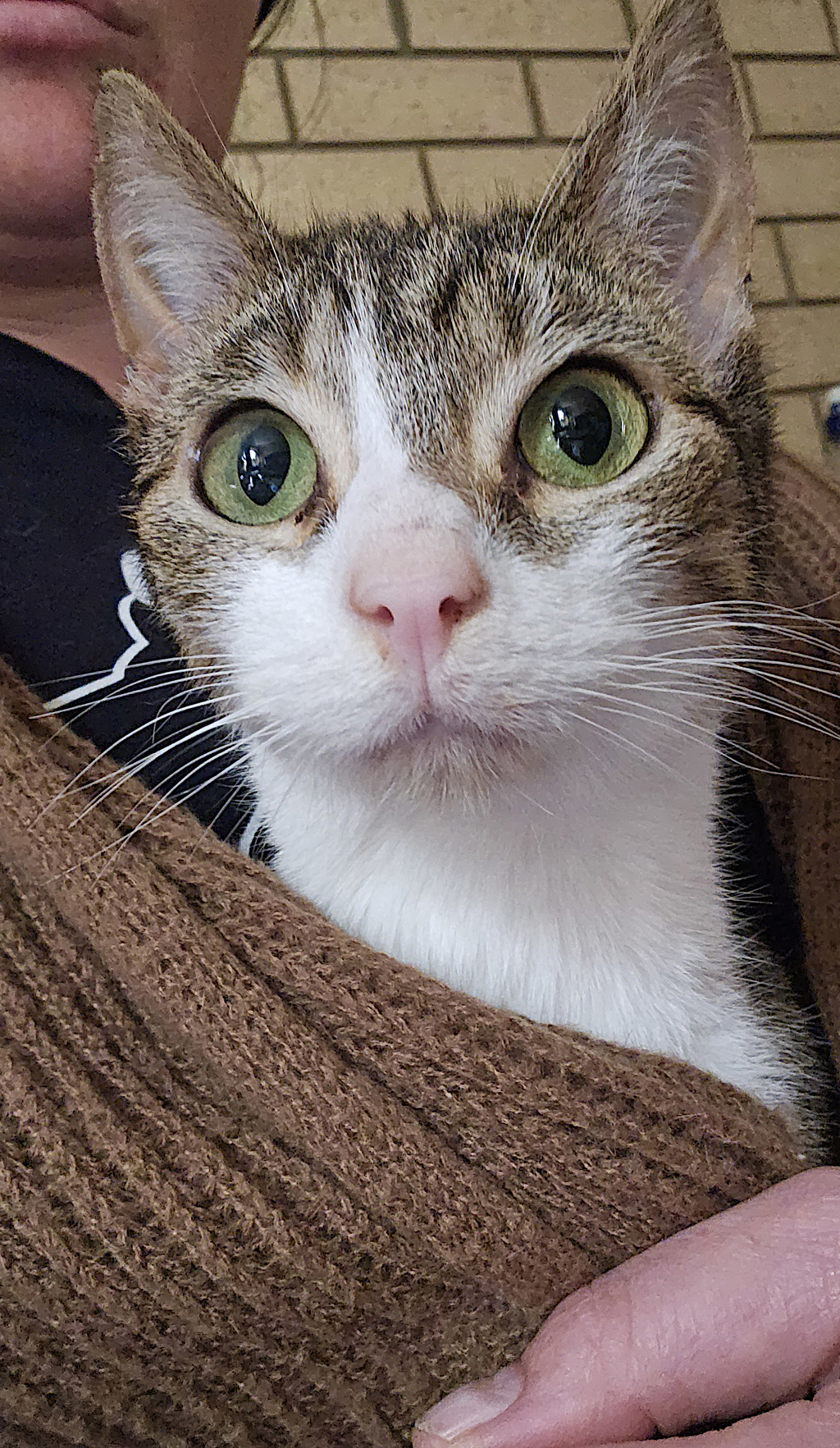 With her soft, soulful eyes and delicate spirit, Dolly is learning to trust again. She may be a little shy at first, but once she feels safe, she blossoms into a purring bundle of affection. Her quiet courage and gentle nature will melt your heart.