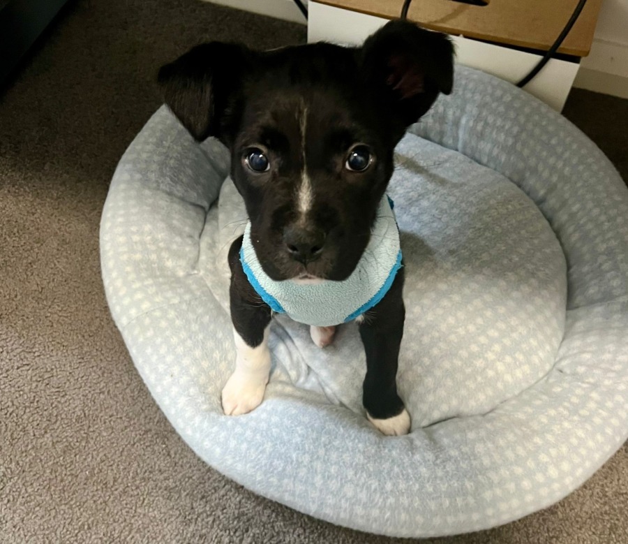 The perfect little shadow! Archer is a sweet puppy who loves nothing more than being close to his people. Loyal and affectionate, he's always ready to keep you company - whether you're relaxing on the couch, working from home, or heading out for a little adventure. With his single sock, he's as charming as he is cuddly, and he'll happily snuggle up for quiet time and endless affection.