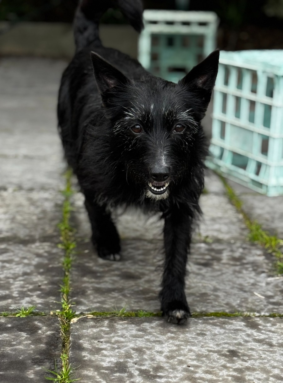 Shadow is a 6-year-old, 13kg Terrier mix with a heart full of love and a calm, gentle nature. She came to us through no fault of her own when her owners' living circumstances changed. Shadow arrived with her best buddy, Holden, a male Staffy, but she's shown she's happy and confident on her own too. This sweet girl loves affection and will happily seek out cuddles, especially a good belly rub! She's great with other dogs and could easily join a home with a friendly male dog already in residence. Shadow has also lived with cats and children, making her an ideal companion for a family. Shadow previously slept outside in a kennel and is not yet toilet trained, but her loving, calm demeanor and desire to be part of a family make her a wonderful candidate for someone ready to give her patience and care. Could Shadow be the newest member of your family pack? Come meet her and see if her sweet, affectionate personality is the perfect match for you!