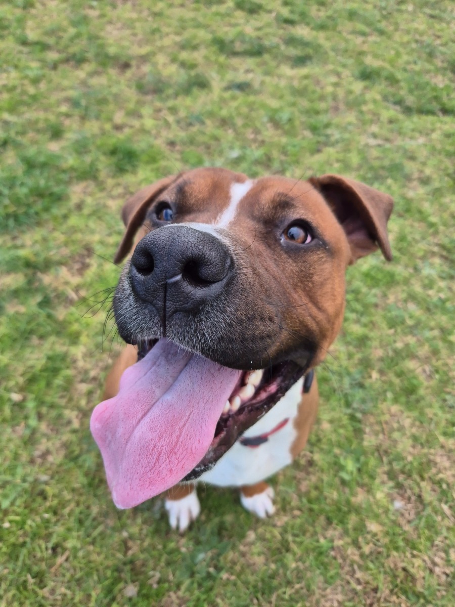 Say hello to Steven, a 1-year-old Boxer x Staffy mix with a heart full of love and a whole lot of energy! Weighing in at 28kg, Steven came to us as a stray, so his past is a bit of a mystery - but his sweet, playful personality is shining through loud and clear. Steven is an affectionate goofball who loves to play and is always up for some fun. He's still learning his manners (particularly when meeting other dogs), but with the right guidance and continued socialisation, he has the potential to be a great canine companion. Steven could thrive with a well-matched doggy sibling who can handle his enthusiastic play style. He may be okay with cats - with slow and careful introductions, Steven could adjust to sharing his space with a feline friend. Due to his boxer-style zoomies and general lack of spatial awareness, Steven isn't the best match for young children. A home with kids aged 10+ who can handle his bouncy enthusiasm would be ideal. Steven will need a family who can help him adjust to home life, as we're not sure if he's toilet trained yet. He'll also benefit from some basic training to learn polite behaviours and channel all that joyful energy. Steven would suit an active, dog-savvy home, ideally with previous experience with large, boisterous breeds. He's the kind of dog who will fill your days with laughs, cuddles, and plenty of tail wags! If you're looking for a loyal, loving, and slightly goofy best mate - Steven might just be your perfect match. Ready to meet Steven? Contact us today to arrange a meet-and-greet!