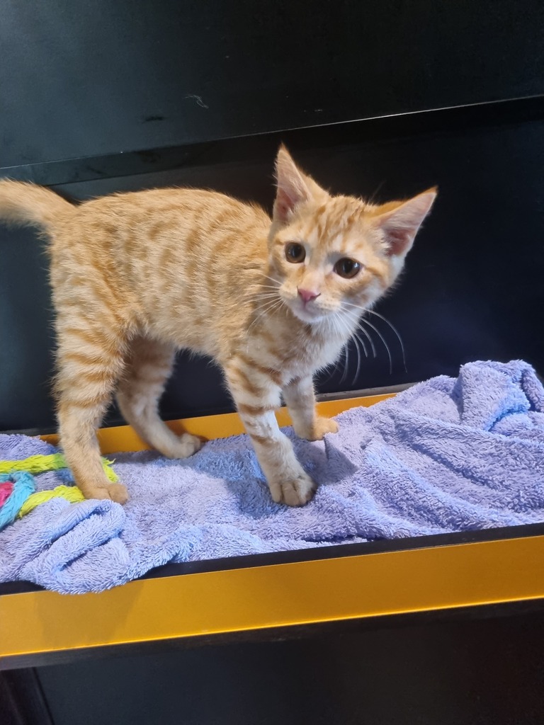 Robert is a charming little ginger tabby with a heart as warm as his coat! At just 3 months old, he's already mastered the art of cuddles, head bumps, and chasing anything that moves. He's an affectionate boy who loves people and is always ready to curl up in your lap after a fun play session.