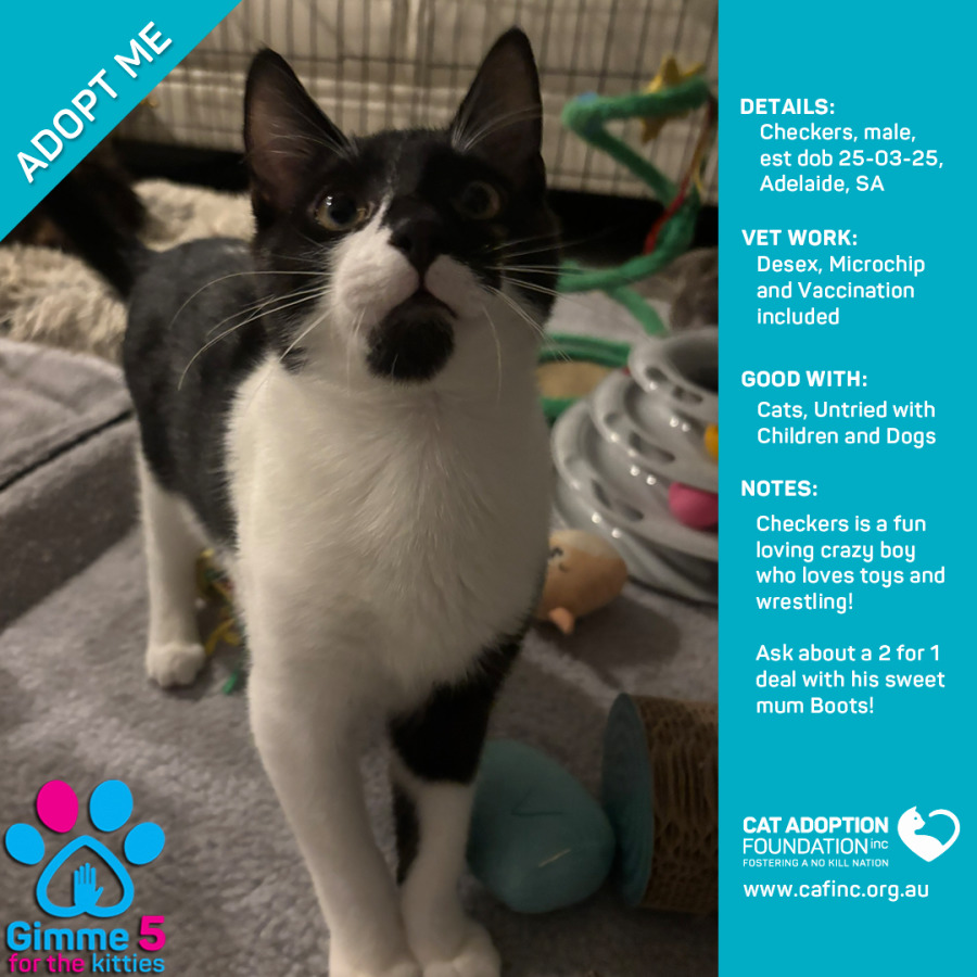 Donate to Checkers at Cat Adoption Foundation Incorporated via Shout