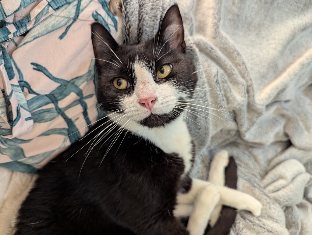 Hello, I'm Maggsie. I love quiet corners and gentle voices. Here in the shelter, I've found comfort among kind humans, but I dream of a peaceful home where I can truly blossom. I'm a bit shy at first, but give me a little time, and I'll curl up beside you, purring softly. My gentle nature makes me perfect for someone who cherishes tranquility just as much as I do. If you're looking for a sweet, friendly companion to share calm days with, I might just be the perfect addition to your life.