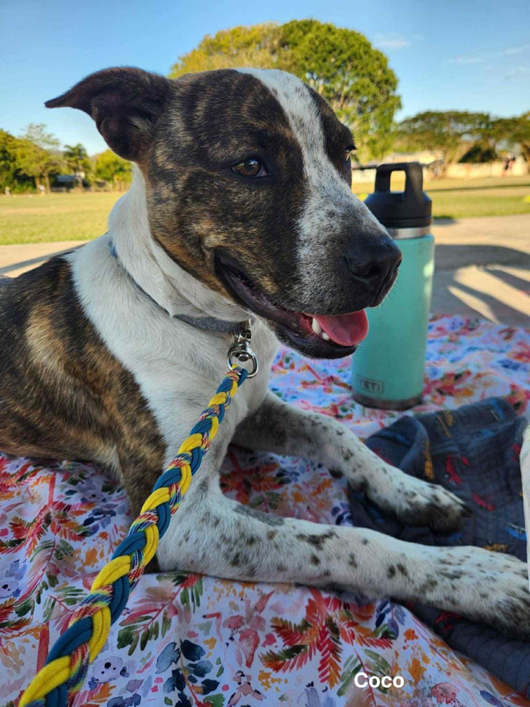 Coco thrives in the company of others and adores having playmates, be they fellow dogs or children. Her playful nature and gentle demeanor make her a great companion for families looking to add a friendly and energetic dog to their home. With her love for play and interaction, Coco can provide hours of joy and laughter to any household.