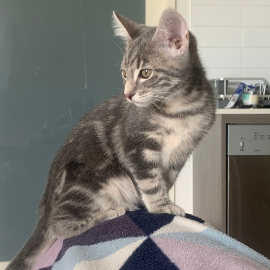 Have you ever wanted a cat who feels like your little sidekick? Well, Janis is ready to apply for the role. This grey and white sweetheart, with her beautiful white markings around her eyes, will happily follow you from room to room, always nearby as your four legged support, but never underfoot.