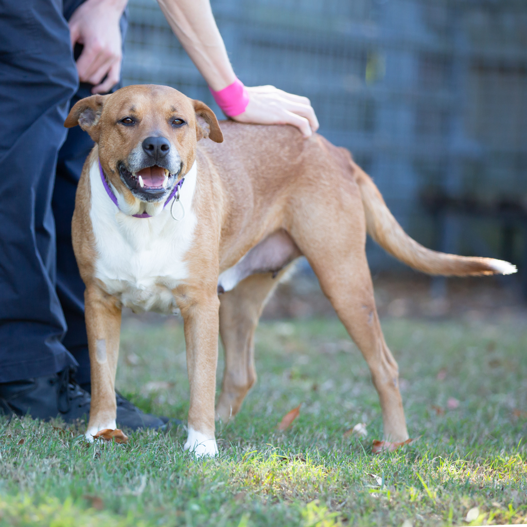 One of Kalinda's greatest joys is spending time with her canine friends. She lights up when she's around other dogs and would really benefit from having a four-legged friend in her new home to play and bond with. Of course, she'd love the chance to meet them first to make sure they get along just right!
