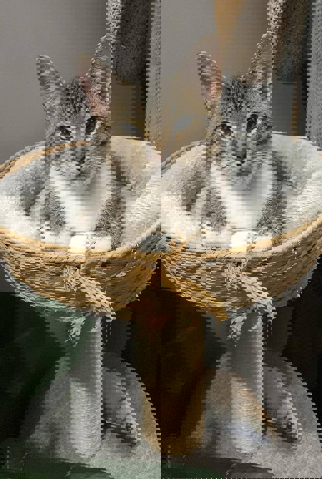 How he got there remains a mystery, but one thing's certain-he's been well cared for along the way. In excellent health, brimming with energy, and with the striking looks and personality of a Bengal, Samson is irresistibly affectionate and loves people. Within a day in his temporary foster home , he claimed the bed, toys and decided the little dog was ok as well. He also claimed every heart that walked through the door.