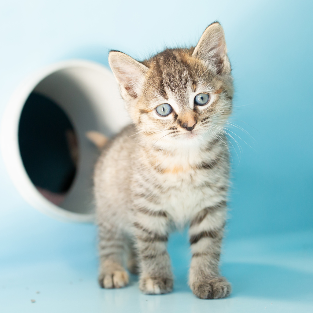 Taming Felicity requires patience, snacks, and a deep respect for her royal kitten ways. Belly rubs are granted only to the worthy, and sudden movements may trigger a dramatic reenactment of aerial combat. She's spirited, spunky, and probably planning world domination from behind your curtains right now.