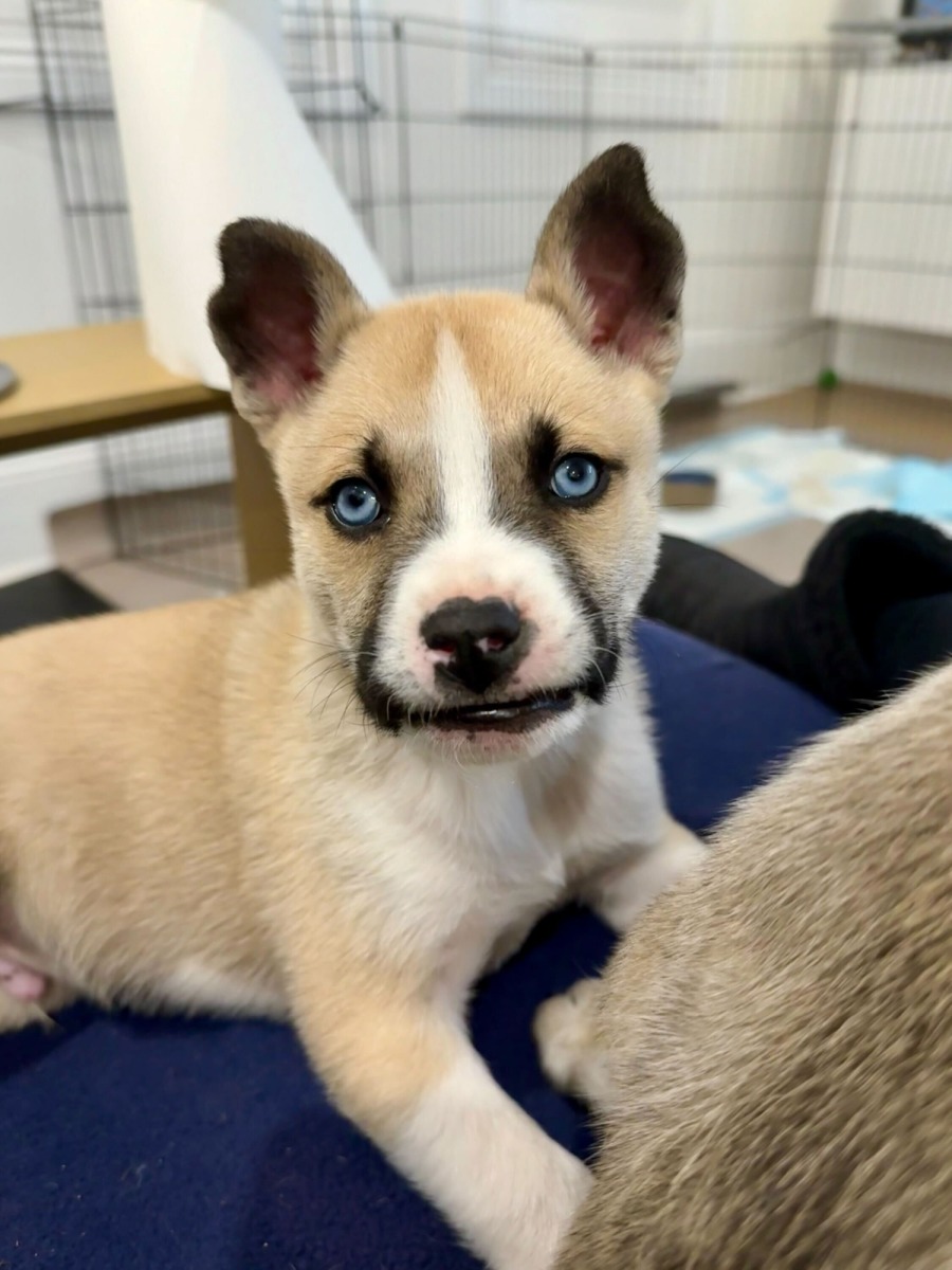 Weyland is your classic puppy triple threat: cheeky, playful, and extremely food-motivated (treats = YES, always). Heâs a confident little guy who enjoys meeting new people and makes friends easilyâwithout bouncing off the walls. Heâs got that cool, calm curiosity of Arctic breeds with just the right amount of independent sass.