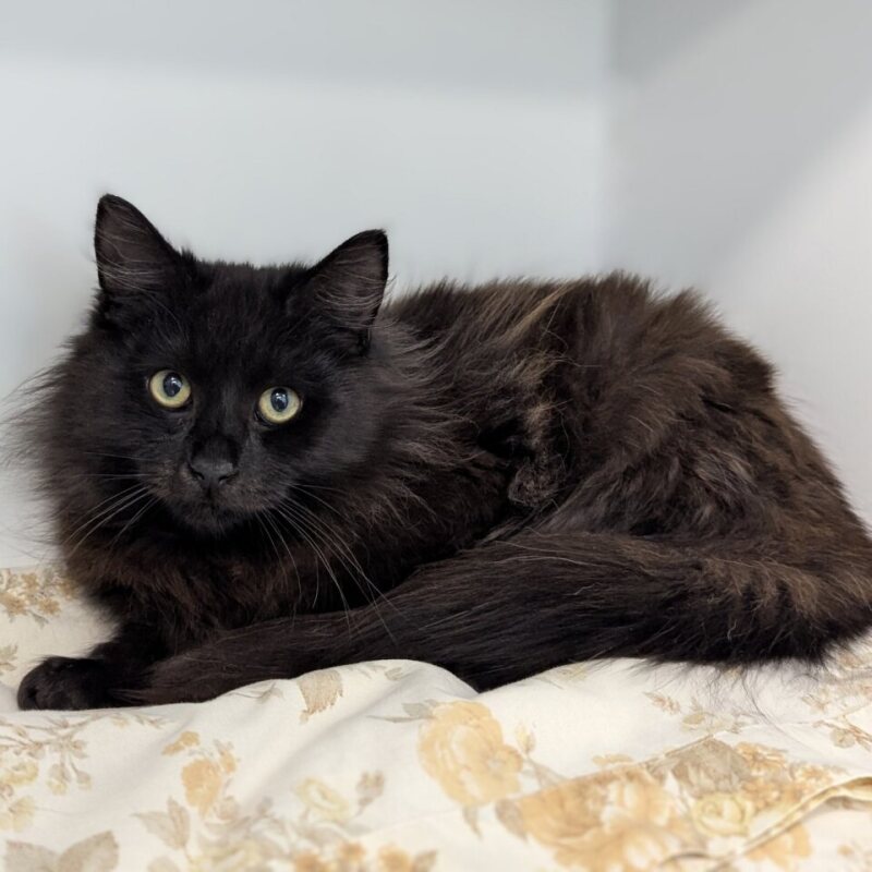 Meet Onyx, a sleek and stunning black cat with a heart full of love to give. This handsome boy has a soft, shiny coat and bright, expressive eyes that will melt your heart. Onyx is a gentle and affectionate companion who loves cuddles, head scratches, and spending quiet time curled up next to his favorite human.