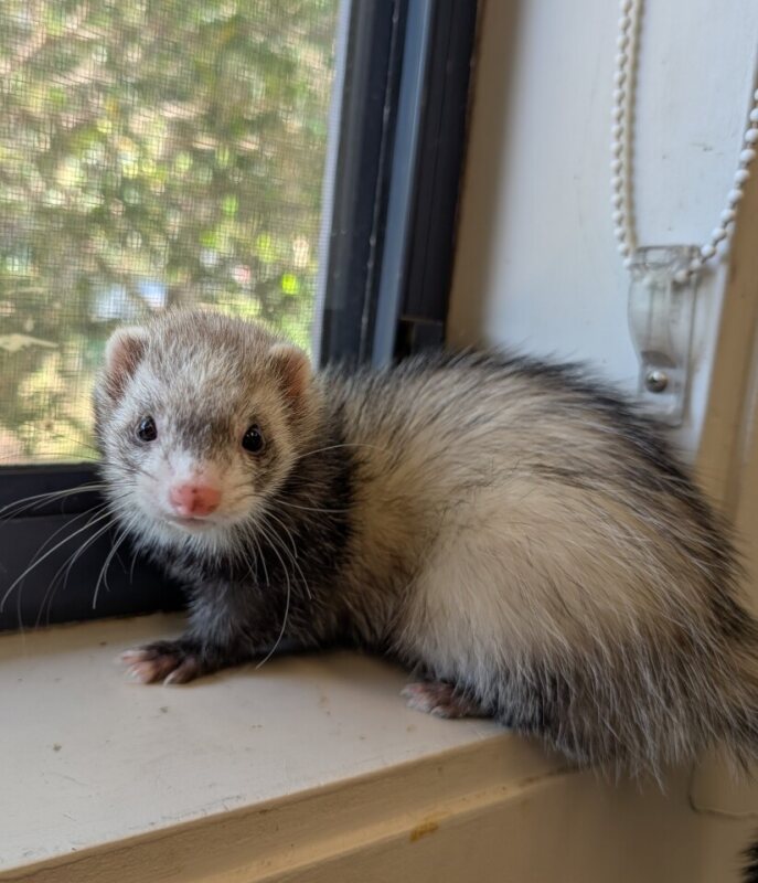 Hi there, my name is Jay. Playful, inquisitive, entertaining and social all describe me. I love my treats, interactive toys, playtime with people, exploring my home and just about everything that a cardboard box can provide! Especially when there are treats inside! A home with ferret experience is best for everyone's comfort. Having been raised with my siblings, another ferret pal would be fun in my new home as well as we are quite social little critters. If you are interested in adopting cute little me, visit the shelter, meet me and see if we are a match.