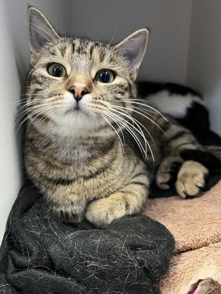 At just 8 months old, Tabitha has the gentle heart and wise eyes of a much older kitty. She's sweet, friendly, and carries a quiet grace that makes her feel like she's been part of your life forever. Tabitha loves soft blankets, warm laps, and peaceful company-she's not one for chaos, but she'll happily follow you from room to room like a little shadow. With her calm presence and loving nature, she's the perfect companion for someone looking for a best friend with a soothing spirit. Tabitha may be young, but her soul is timeless-and she's ready to love you for life.