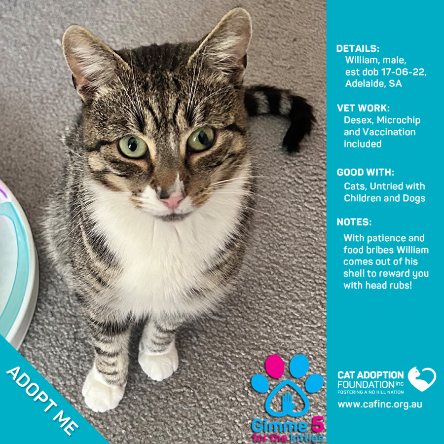 Donate to William Only $50 Prices will rise soon! at Cat Adoption Foundation Incorporated via Shout