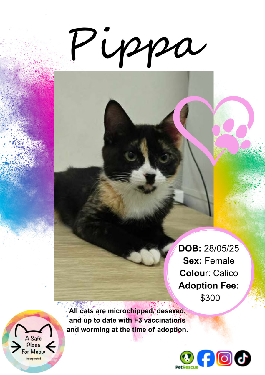 Meet Pippa, this confident little fluff ball is as charming as they come, radiating an irresistible blend of beauty, energy, and affection. If you're looking for a pet who will brighten your day with an enthusiastic purr and playful antics, Pippa is the perfect match.