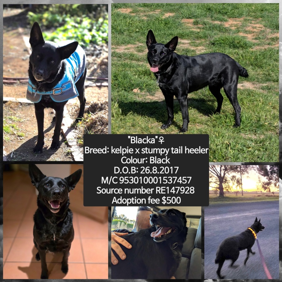 Blacka is a 8-year-old black Kelpie cross with a gentle nature and a big heart.
