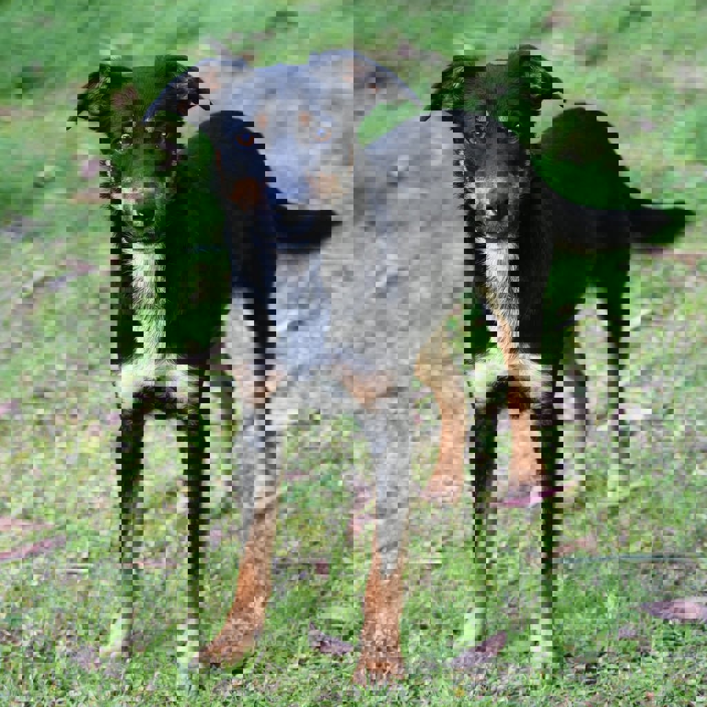 Ruby is a very gentle and quiet Kelpie X. She does not jump and isn't mouthy at all. She is very active so will need a lot of exercise and stimulation to keep her smart mind stimulated. Ruby has fitted in well with the other dogs at her foster home and is not food aggressive at all. She is not bossy or dominant, she just loves to join in on the action. She would make a great little second dog. At only 12.5kg you can easily pick her up if required.