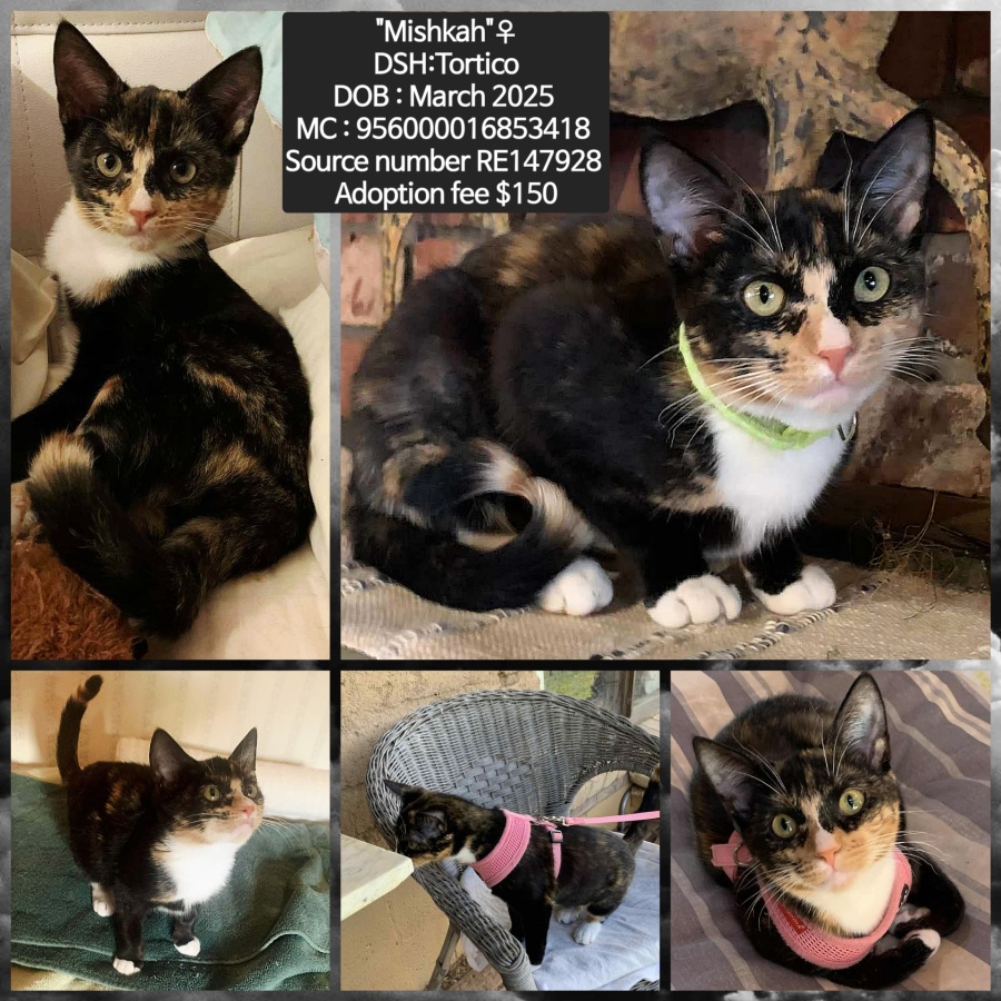 Mishkah is a quiet affectionate kitten who is currently living in a busy animal friendly house-hold with other foster cats, resident cats and 2 dogs.