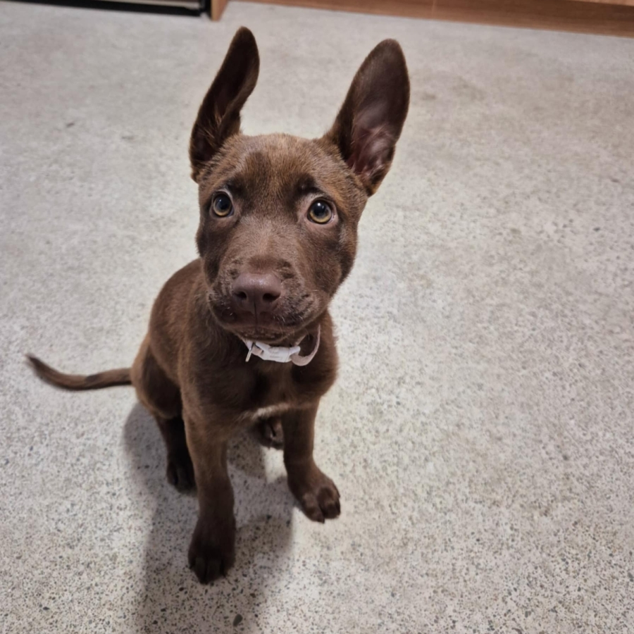 Possum is an adorable and striking 16-week-old Kelpie X (maybe Chocolate Lab or Shepherd?), who shines with her rich chocolate-brown coat and charming presence. She is a quiet, calm, yet confident pup, with a friendly, outgoing nature and loves to be part of everything going on around her. Playful, affectionate, and intelligent, Possum shows all the qualities of a loyal and trainable companion.