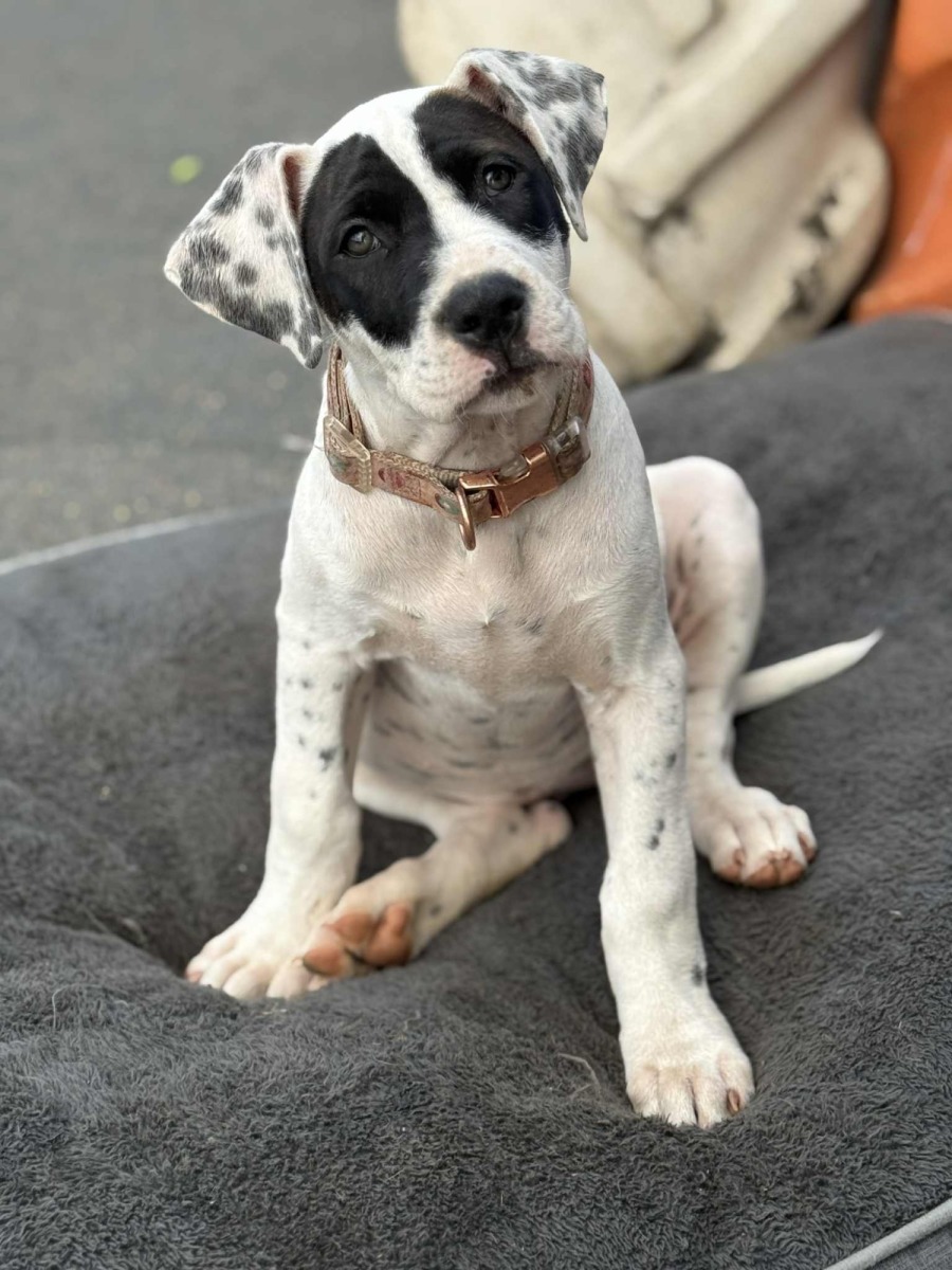 Mayhem is the cheekiest and most outgoing of her sisters. Always in for whatever is happening. She plays hard, loves hard and sleeps hard. She rains confidence and doesn’t let anything get her down. She is literally happy all of the time. She loves kids and will even attempt to play with the resident cat. With her beautiful, happy and outgoing personality, this sweetheart with adapt amazingly into any home where she will play a big part in the family and give you all the love you can ask for.
