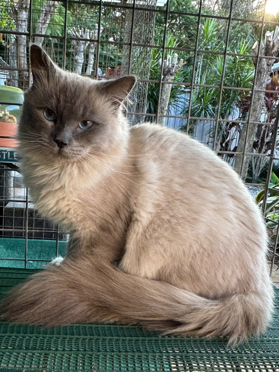 Meet Lucky Charms, this stunning blue-eyed boy was found on the streets of Kangaroo Point, where a kind-hearted Samaritan had been feeding him and slowly working with him to trust humans even if it was just for food.