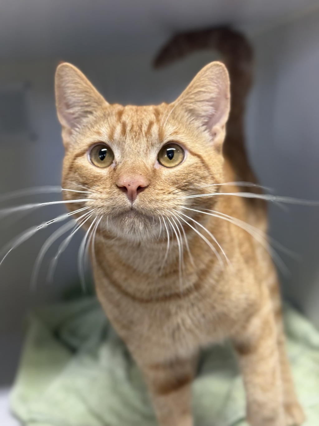 Looking for a confident, chatty cat who loves cuddles and Dine Purée? Meet Gus! This ginger boy is full of personality and would love a home where he can play, explore, and be spoiled with treats. He's great for first-time owners, families with respectful kids, and may even enjoy a feline friend with the right intro. Gus can be a door-barger, so secure doors and windows are a must. A playful spirit with a loving heart-Gus is ready to be your new best friend!