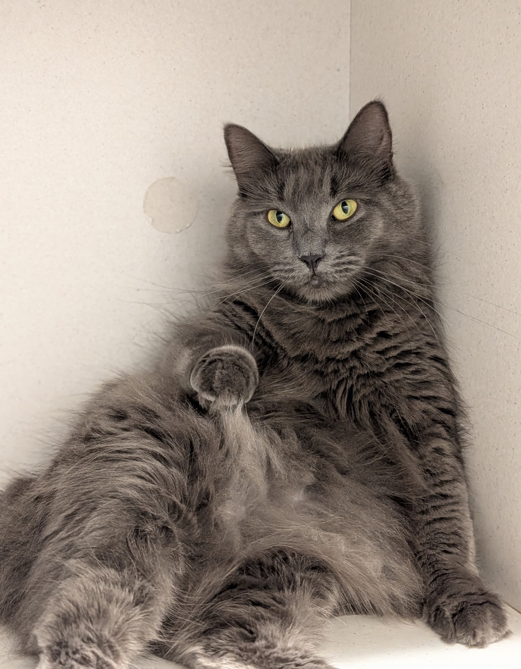 She thrives in calm, low‑traffic homes and prefers to be the only cat. Cozy hiding spots like igloo beds, boxes, and blankets help her feel secure - and once she's settled, she enjoys toys, towers, and scratchers too! 🧶💛