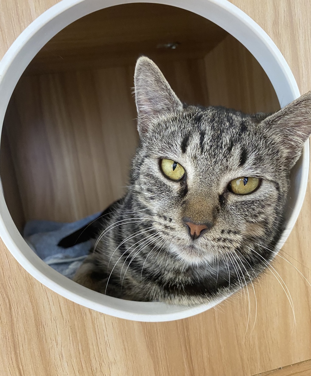 Pea is a young girl but an old soul and wise in nature. She has a nurturing nature and being cat social, she loves looking after her feline companions. She is a sweet little soul who arrived feeling scared but is revealing her gentle and loving nature. She's looking for a calm, safe home where she can take all the time she needs to feel comfortable and truly shine. With patience, understanding, and a cozy space filled with little hiding spots, Pea will blossom into a devoted and tender companion. She's best suited to experienced cat lovers who appreciate her shy spirit and can offer a peaceful environment. Pea's heart is waiting for someone kind to help her feel at home, and in return, she promises to fill that home with quiet love. Apply to adopt today!