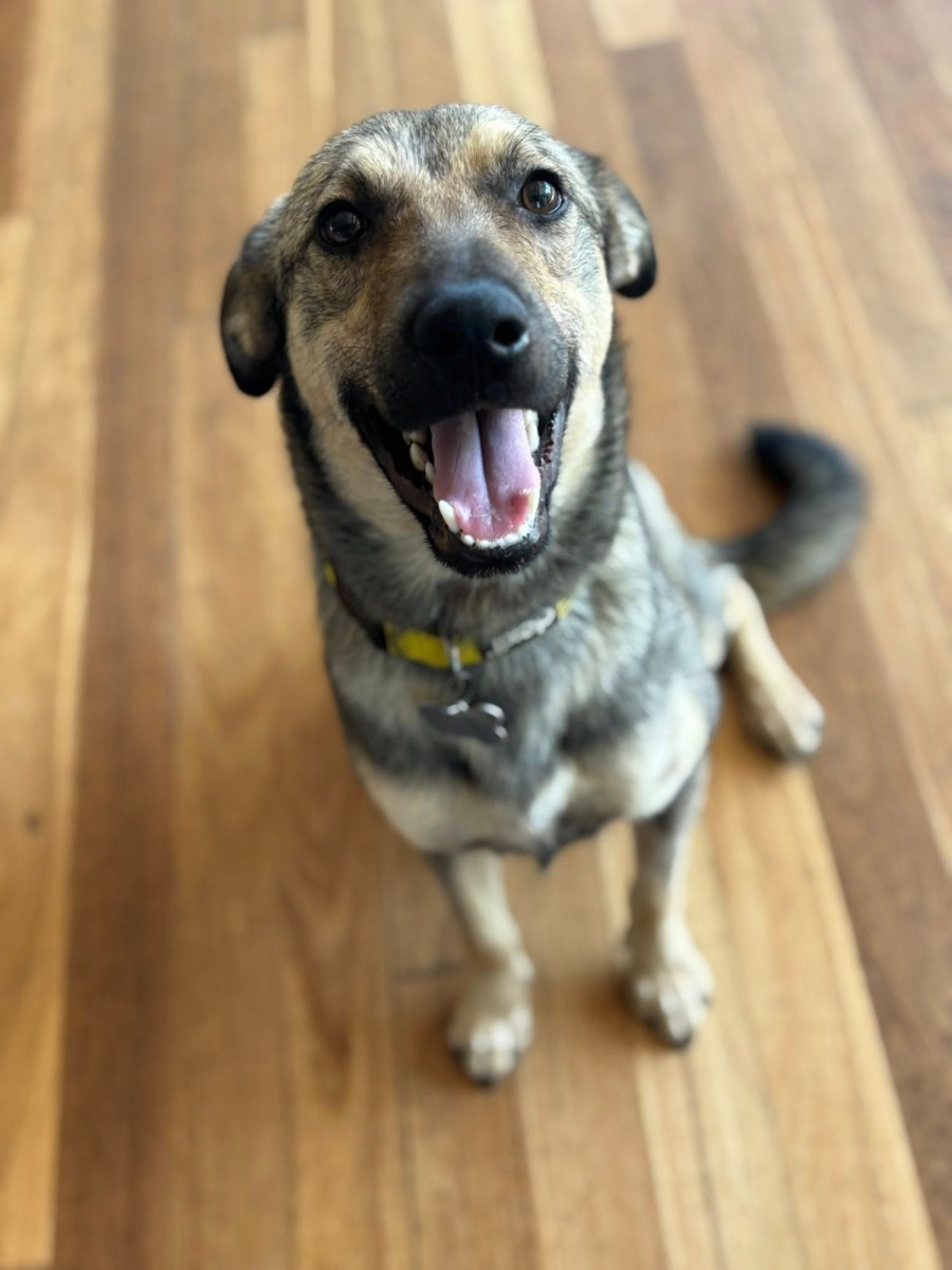 If you love the look of a German Shepherd but they are too big for you, Chomps may be the dog for you as he looks just like a GSD, only half the size. Like GSDs, he loves to splay his legs behind him when lying on his belly (‘splooting’).