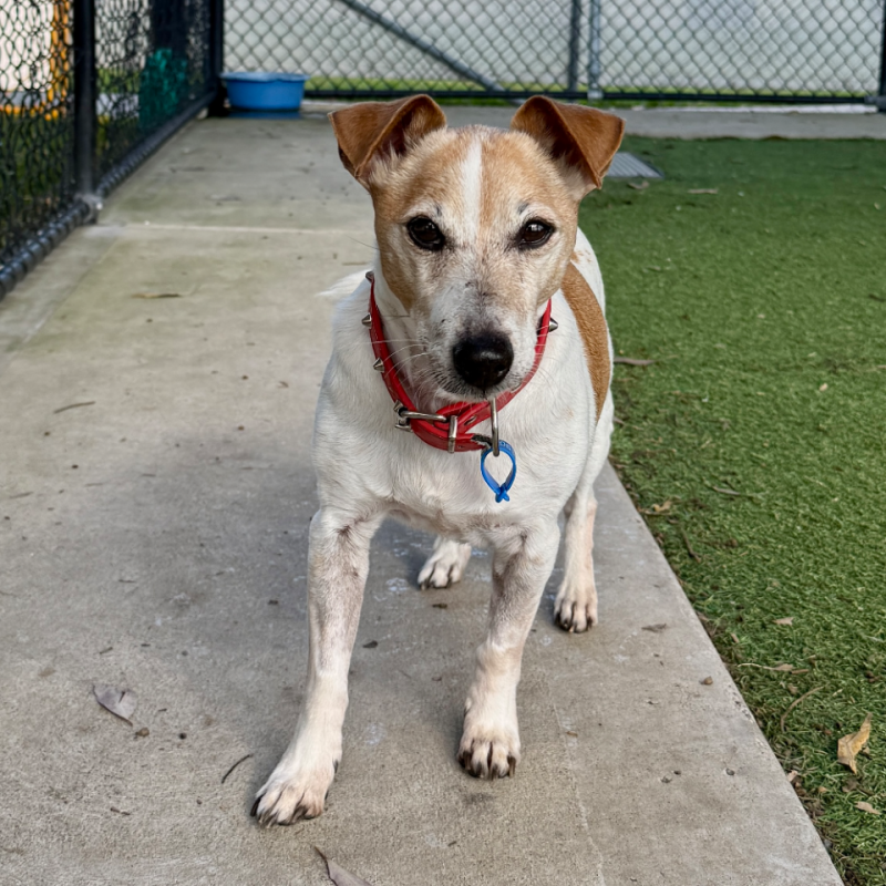 Meet Lightning, a 13-year-old Jack Russell Terrier with a heart as bright as his name. He’s a white-and-tan handsome gentleman who approaches life with gentle confidence and a calm, steady presence. Lightning is adjusted to a quiet, homey household and thrives in a predictable routine, making him a wonderful companion for someone seeking a peaceful, low-energy bond.